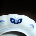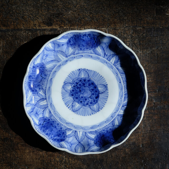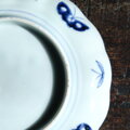 六つの紫陽花◆線描きで素敵。伊万里 紫陽花文染付線描き七寸中皿 骨董・antiques 蝶々 江戸末期 i2