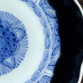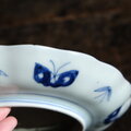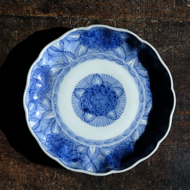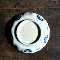 六つの紫陽花◆線描きで素敵。伊万里 紫陽花文染付線描き七寸中皿 骨董・antiques 蝶々 江戸末期 i5【縁にアタリ】
