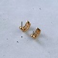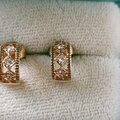 1886年アメリカのニューヨークにて小さな香水会社を創業、1971年に本格的にコスチュームジュエリーの製作を開始したAvon(エイボン)の2000年に販売された“ROSE GOLD COLORED”の菱形の部分にクリアラインストーンがあしらわれたローズゴールドの小ぶりなオープンワークハーフフープのヴィンテージピアスです。