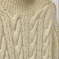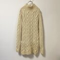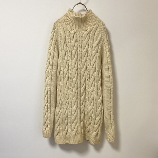 レトロなケーブル模様が素敵な手編みのUSA古着ニットセーター。暖かみのある厚手のニット素材で、ほどよくゆとりのあるキレイなシルエットです。長めの丈感でタイトなボトムスとのコーディネートにおすすめです。
