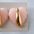 1886年アメリカのニューヨークにて小さな香水会社を創業、1971年に本格的にコスチュームジュエリーの製作を開始したAvon(エイボン)の1987年に販売された“winter pastels”のゴールドメタルとパステルピンクのプラスチックでハート型のリーフがデザインされたヴィンテージピアスです。