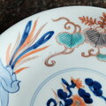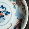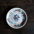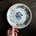 見込みに花籠◆桐と鳳凰。伊万里 花文赤絵金彩中皿 骨董・antique 古美術 明治時代