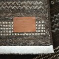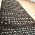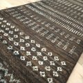 濃いブラウンをベースに、ベージュの色目で、四角、ジグザグ、