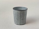 砂混じりの黒い土に鎬を入れ、光沢のある白い釉薬を掛けました。ややタテ長の形状なので、量をお求めの方向けの器です。お使い頂く時間と共に貫入も入り、掌中に白と黒のコントラストをお楽しみ下さい。