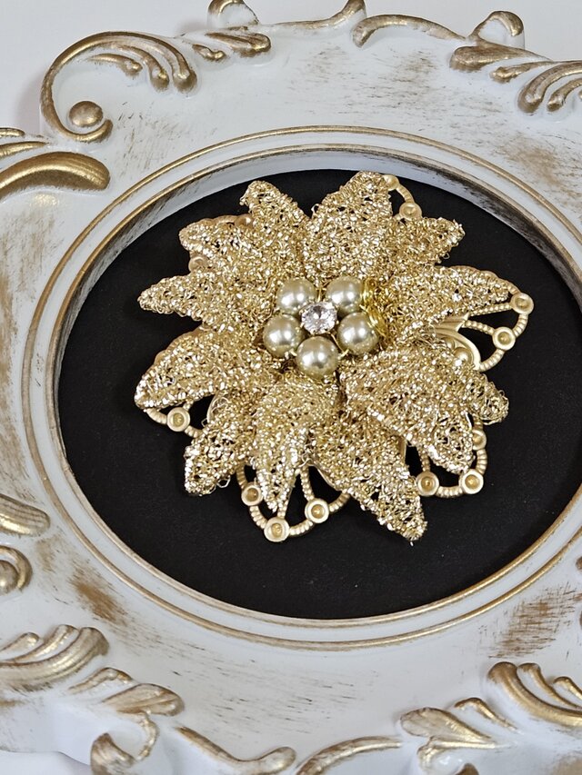 レースのような花びらパーツを幾重にも重ね 立体的に仕上げました。