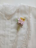 春の訪れをつげるミモザと桜色に染めたすみれに葉を添え、リボンを結びお洒落なコサージュに仕上げました。