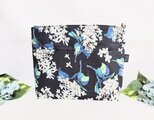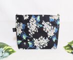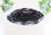 リバティアーカイブライラック柄、ブラック地にオフホワイトに淡いピンクが入ったライラックの花柄、柔らかくて軽い綿タナローン生地のクラッチバックです。
