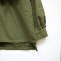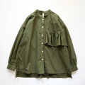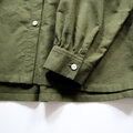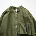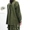 2way tuck & gather blouse (pistachio/linen)前立ての二つボタンがトリッキーでキュート、可愛くてしかも堅実なデザインだと思います。