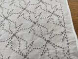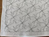 ホワイトのコットン100%の生地に北帰行の模様を刺してクロスを作りました。