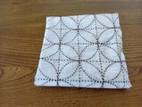 刺し子の花ふきん 十字花刺し刺し子でふっくらした質感がなんともいえず可愛いです。すぐに布巾として使うのはもったいない気持ちになってしまい、楽しく別用途を考えているところです。素敵な作品どうもありがとうございました。