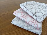 刺し子の花ふきん 違い刺し今日無事届きました。とても素敵な色合いでいつもながらの丁寧なお仕事に感激します。ありがとうございました。