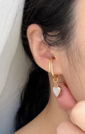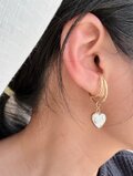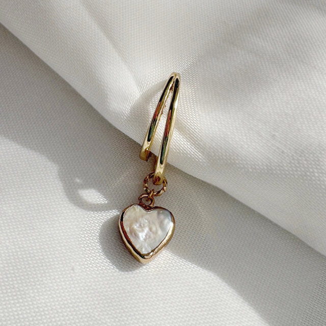 ハート型をモチーフにした個性的なイヤーカフです。パールの縁辺部分がゴールドカラー金メッキで囲い、ハート形の存在感がより一層目を引きます。甘すぎない大人のハートイヤーカフです。