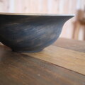 外側は深い黒、内側は木そのままの色。