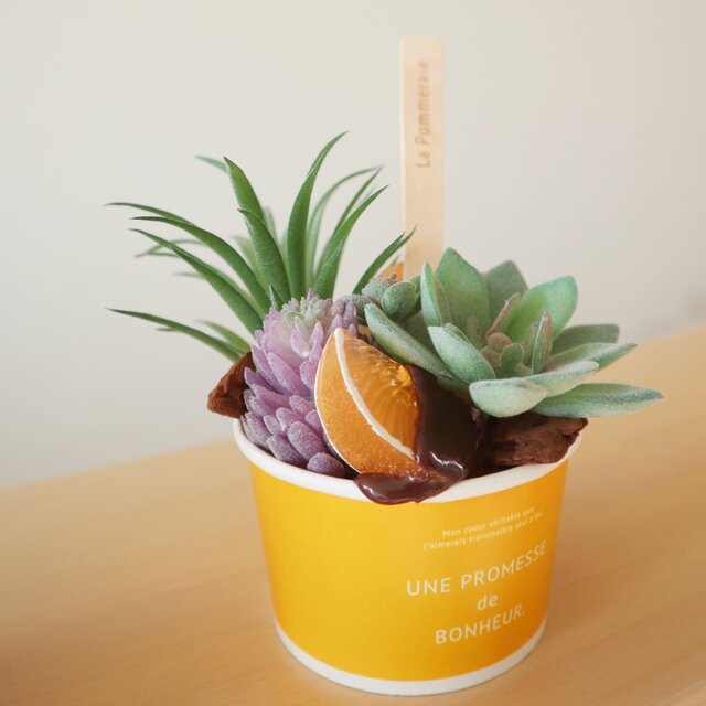 多肉植物のある風景 Ice Cream Arrangement ★フェイクグリーン★orange