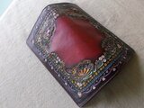 ※この商品は、表面ヌメ革部分の刻印デザインや染めのみを当工房で行ったもので、財布本体部分は既製のクラフトキットのものを利用しています。あらかじめご了承ください。