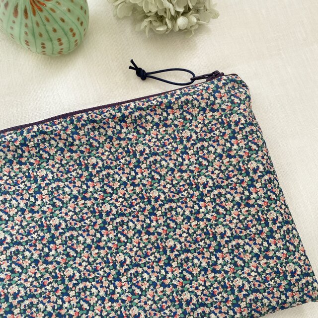 人気のリバティプリント・ペッパーを使って、使いやすい大きさのシンプルなフラットポーチをお作りしました♪