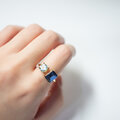同じ“ブルー”でありながら、質感も表情も異なる2石が、美しいコントラストと奥行きを生み出します。