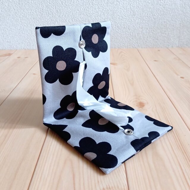 携帯用ティッシュケース ボックスティッシュから詰替え 北欧風花柄 ブラック 590