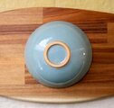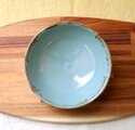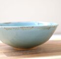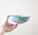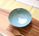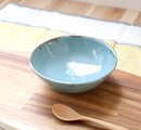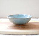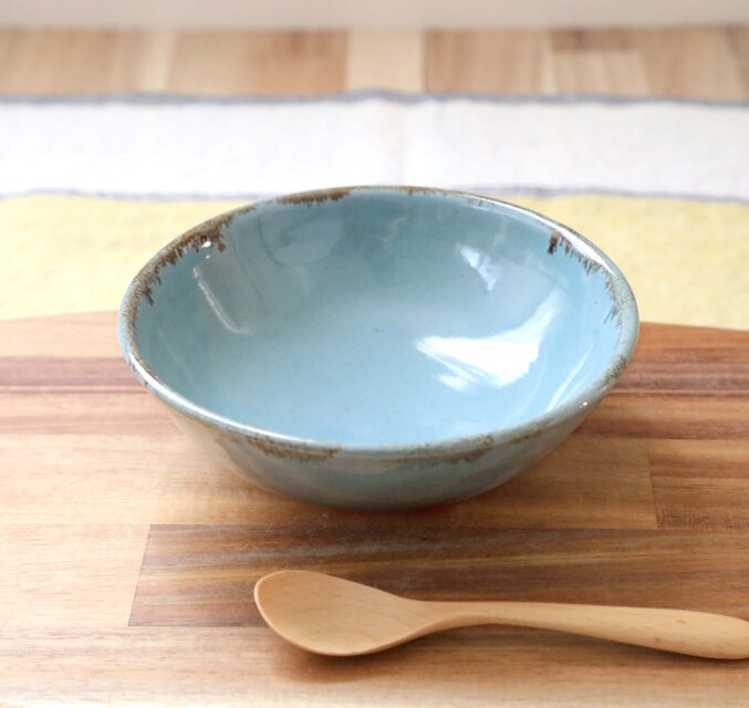 少し浅めの碗の形に成形し、落ち着いたニュアンスブルーの釉薬をかけて焼き上げました。
