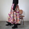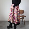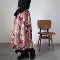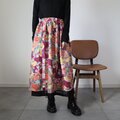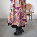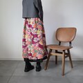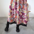 アンティークの子供着物をメインに作ったレイヤードスカートです。内側には黒の絽の着物と縮緬着物を使っおり、ウエストにはゴムを通しています。シミが多いです。アンティークに慣れた方向けですのでご注意ください。