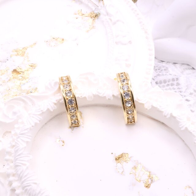 【 ROMAN】 クリアラインストーン × ゴールド ピアス *Vintage Radiant Accent 1980s