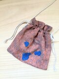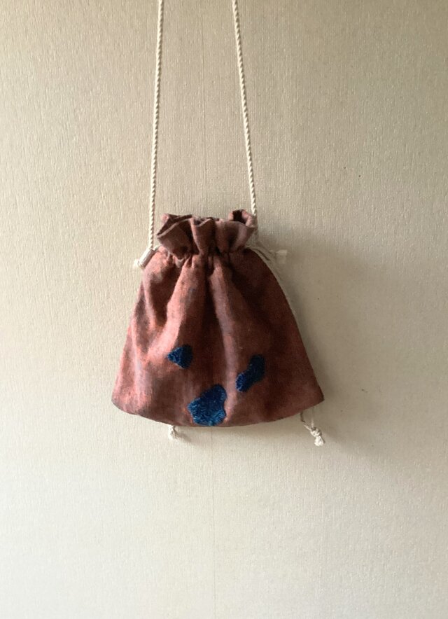 アップされて直ぐに目にとまりました!起毛リネンは初めてでしたが、草木染めの糸の色調と良く合って、手触りも含めて優しい雰囲気を感じました。癒される巾着です!一本の木のお色使いがとってもオシャレで額絵のようです!糸を重ねることによる陰影を見て色々空想して楽しんでいます!この度もアートなお作品を頂き本当にありがとうございました!嬉しすぎます!
