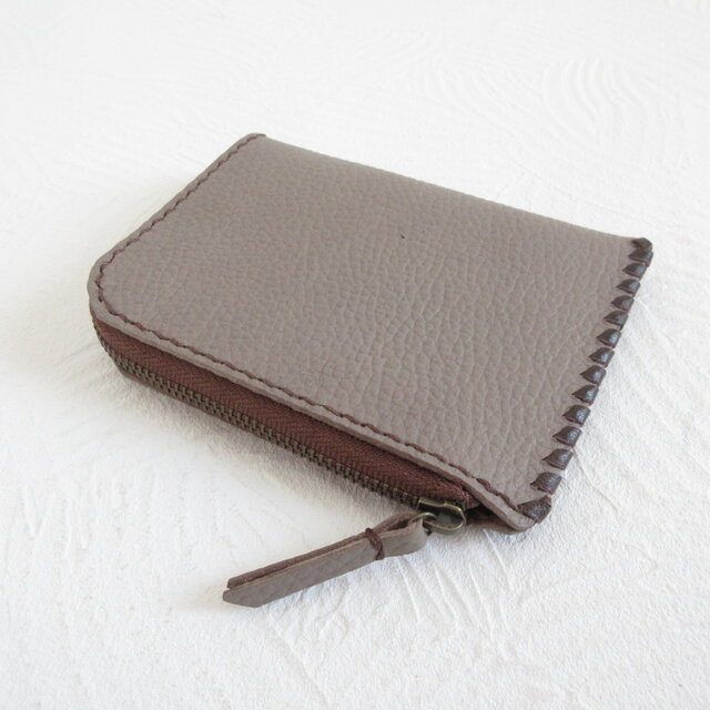 SALE開始~ new type♪《牛革》L字ファスナー・コインケース・シュリンクレザー・グレージュ・0506