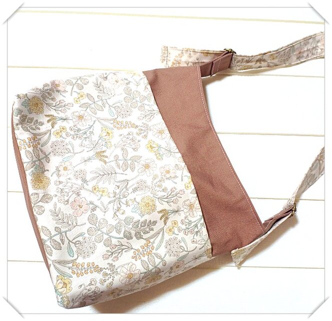 ショルダー紐もビューティフルガーデンの生地で製作しています。
