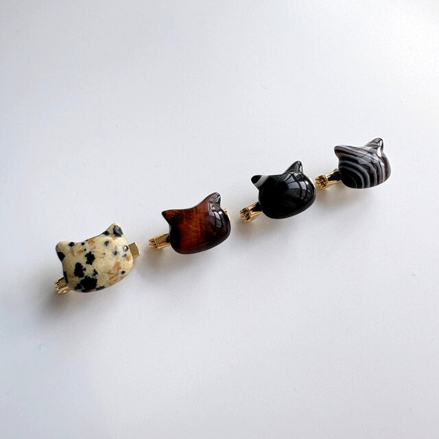 ◾️素材 留め具金属 猫モチーフ約10㎜ 天然石レッドタイガーアイ、ダルメシアンジャスパー、オニキス