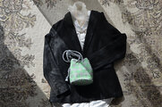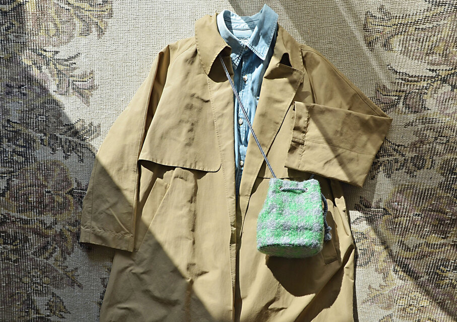 ●春のベージュコーデにもブラックコーデやエクリュコーデにも溶け込んでくれる落ち着いたスプリンググリーンカラーベースのポシェットマリンバッグ。