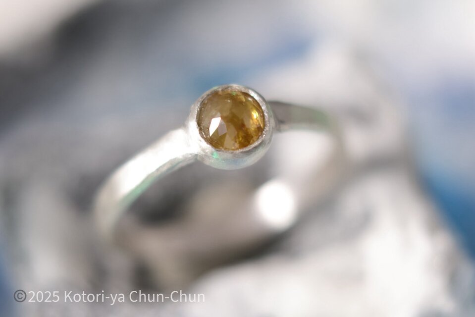 【大粒!】Yashのローズカット ナチュラルダイヤモンド・シルバーリング【イエロー・ナッツ】