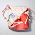 着物地をリメイクしてミニ巾着を作りました。
