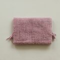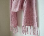 ピンクのシルクウールときなりのソフトループを組み合わせで、シャドウ織りという技法で織りました。