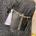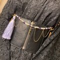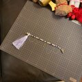 濃淡のあるパープルの天然石に、アンティーク調の「鍵」のチャームをプラス。誰にも明かさない秘密の扉を開くような、物語性を感じさせるデザインが魅力です。 パープル系やネイビー系のワンピースに合わせれば、知的な華やかさに。菫色のタッセルが揺れるたび、周囲の視線を惹きつける気品ある逸品です。