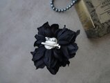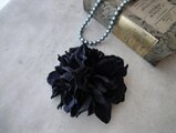 横顔を引き立てる ダリアのコサージュ■ 漆黒 ブラックフォーマル ■ スターダリア 3輪合わせ
