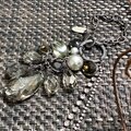 真鍮(チェーン部分)、ガラス(各種パーツ、パールもガラスパール)、アクリル樹脂(ラグビー型のパーツのみ)