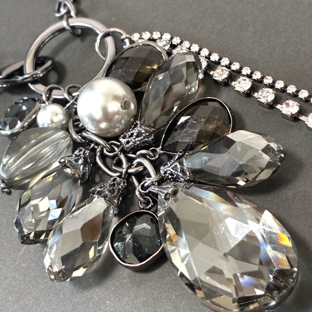 大人可愛いキラキラ光雫バッグチャーム 透明ブラック
