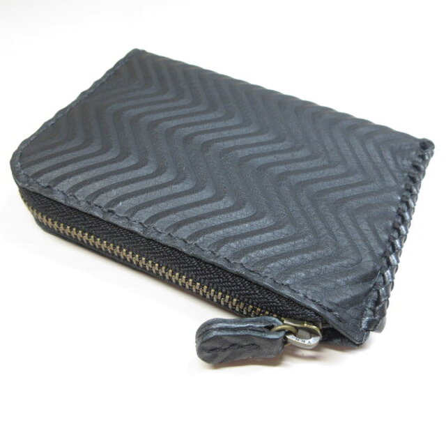 SALE開始~ 《牛革》ブラック・ウェーブ型押し・L字ファスナー・コインケース・0494