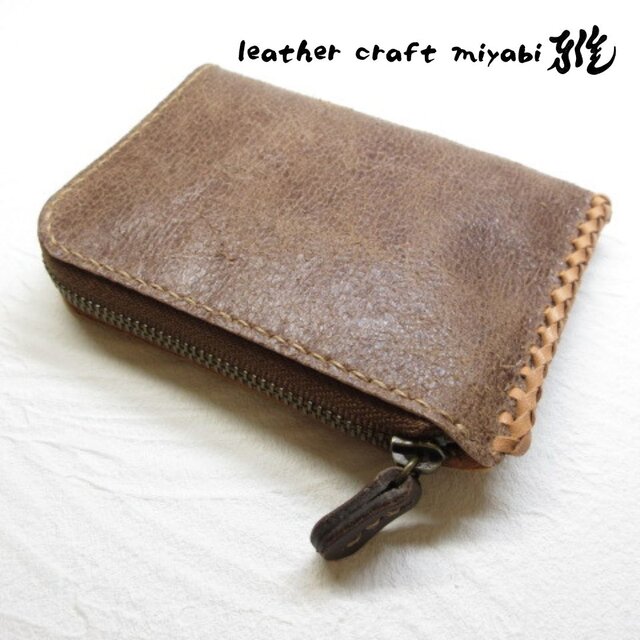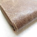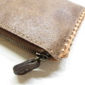 〇ヒビ割れた表面がビンテージ感を出しているドライな手触りのレザーです。