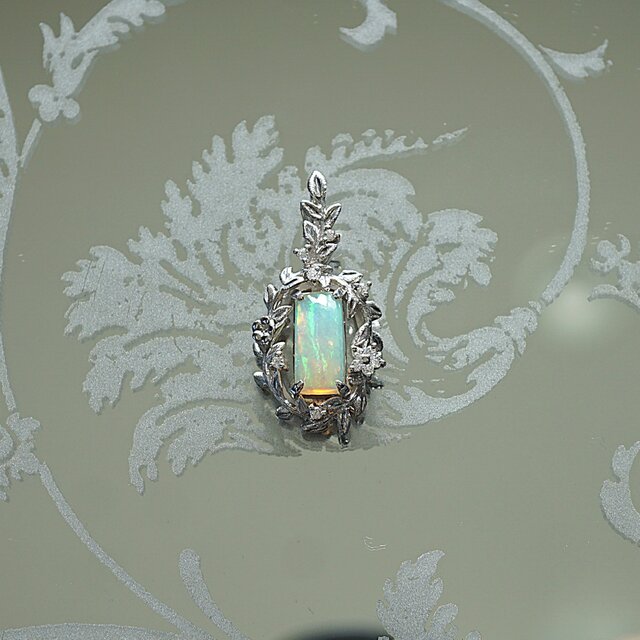 オパールとモアッサナイトを使用し、シルバーでペンダントを製作いたしました。