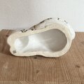 古信楽土で成形、素焼き後描画して乳白色の釉薬を掛け1230度で本焼きしました。