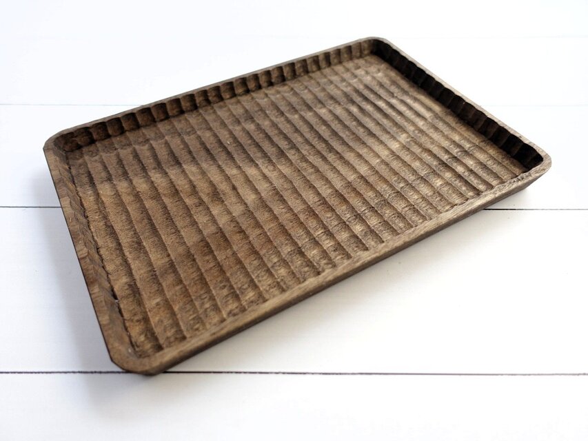 力強い彫りなのに、思いのほか手触りは優しく、また裏面もリバーシブルで使えるという発見もあり、いい買い物をさせていただきました。奇しくも新潟のへぎそばを送って頂いたのと重なり、へぎそばのへぎってこのことだったんだと合点した次第です。大事に使わせていただきます。有難うございました。