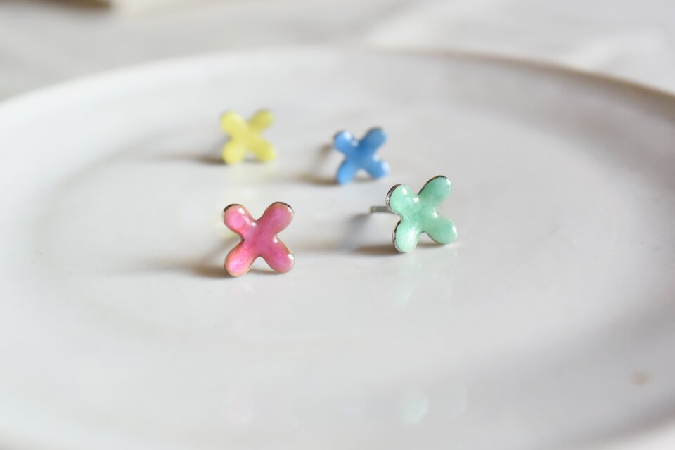 散歩しているとふと目に留まる、可愛らしい野花のイメージで焼き上げた七宝焼きのピアスです。
