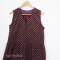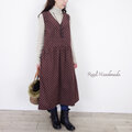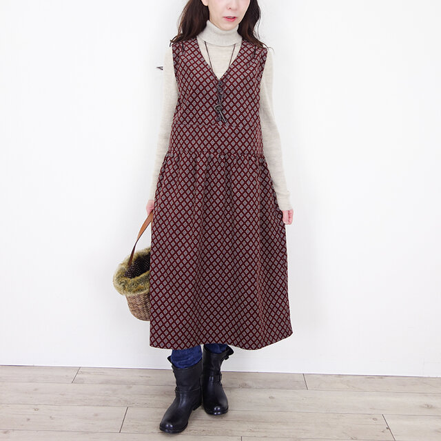 プロヴァンス柄コーデュロイのVネックループボタン切替ワンピース