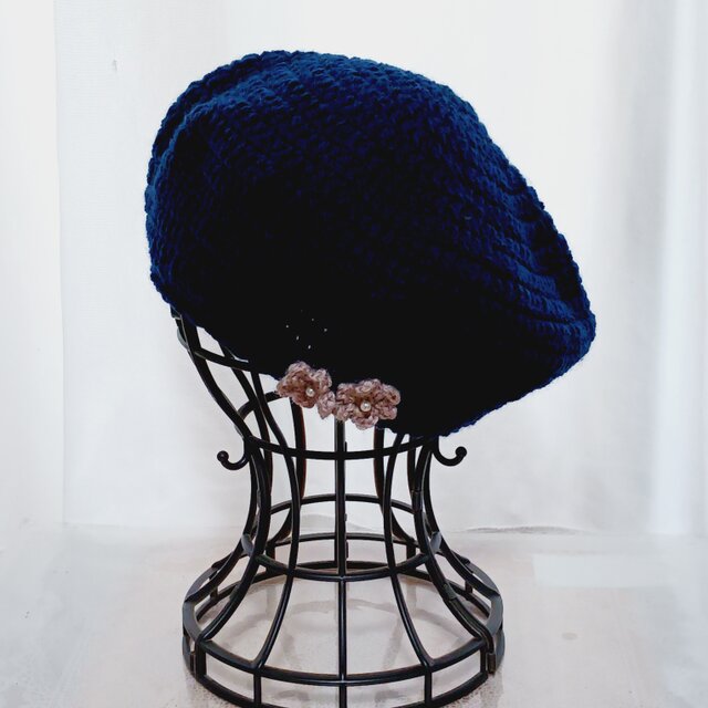 ネイビー ベレー帽 ニット帽 手編み ハンドメイド