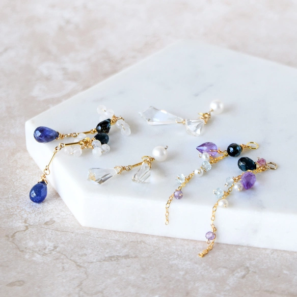 14kgf 月光の余韻 Tanzanite / London Blue Topaz / Crystal イヤーチャーム