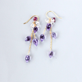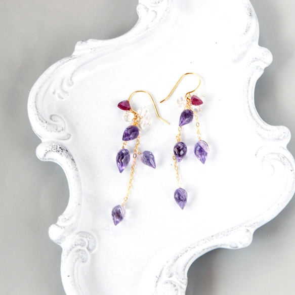 春告げの花蕾 ― 紫雫 ピンクアメジストxルビーxハーキマーダイヤモンドピアス14kgf