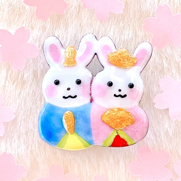ぴょんぴょんウサギのお雛様•七宝焼帯留め(ブローチ金具に変更可)