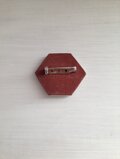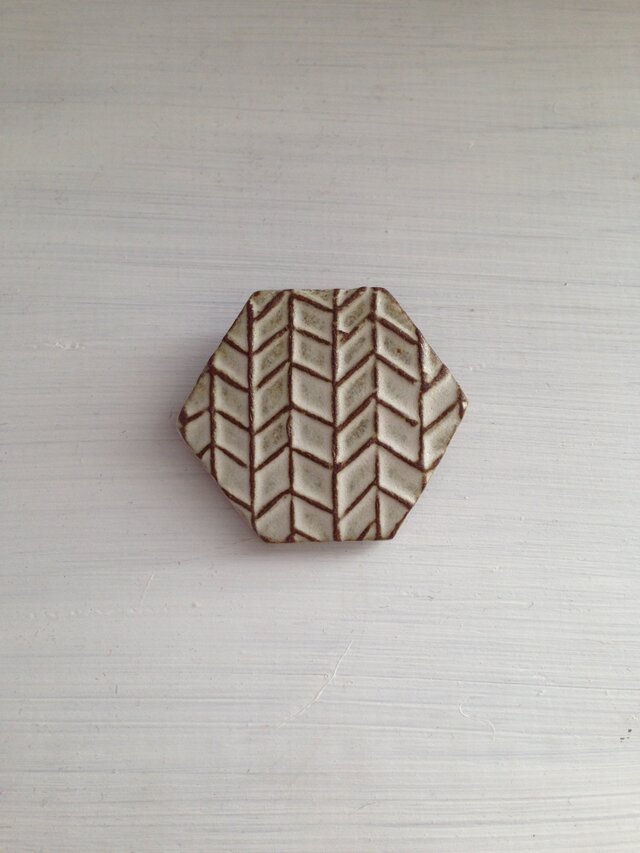 赤土を型押しし、白いマットな釉薬を使用した陶器製のブローチです。