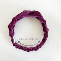 マゼンダ色のドイツ製コットンベロアで作ったヘアバンドです。マゼンダ色のスワロフスキービーズとパープル色のビーズで刺繍をしました。前後の向きを変えることで違った見え方をお楽しみ頂けます。
